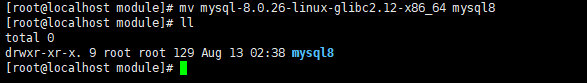 [root@localhost module]# mv mysql-8.0.26-linux-glibc2.12-x86_64 mysql8