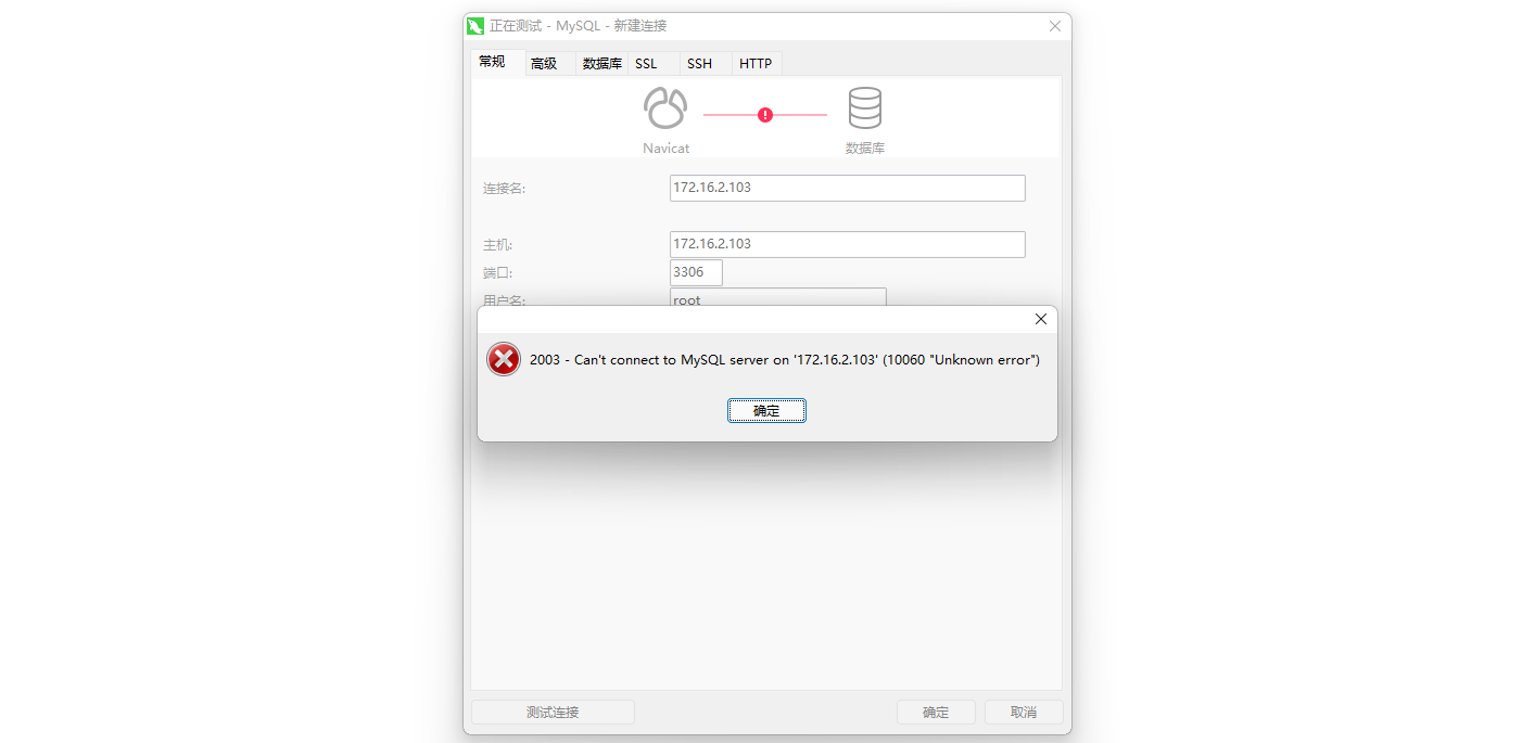 Navicat Premium配置远程连接mysql出现10060 “Unkown error”错误:
