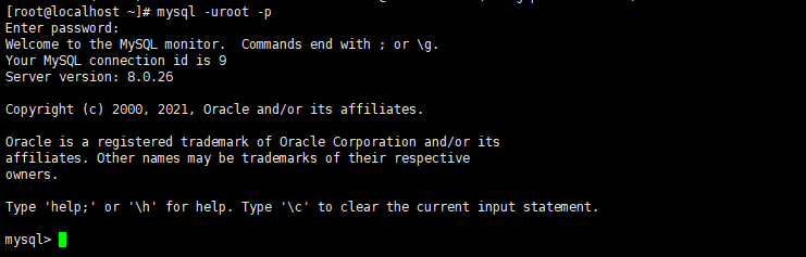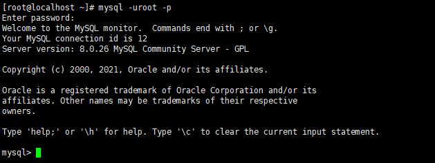 [root@localhost ~]# mysql -uroot -p