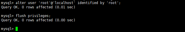mysql> alter user 'root'@'%' identified with mysql_native_password by 'password';