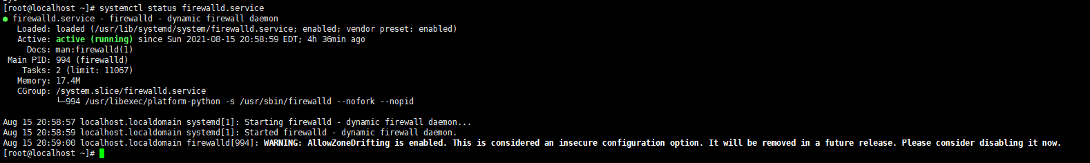 [root@localhost ~]# systemctl start firewalld.service