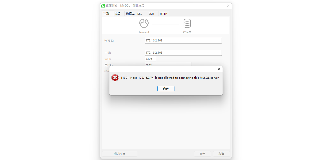 防火墙问题解决后,Navicat Premium配置远程连接Mysql数据库报“Host ‘xxx.xxx.xxx.xxx’ is not allowed to connect to this MySQL server”错误,这是由于Mysql配置了不支持远程连接引起的。
