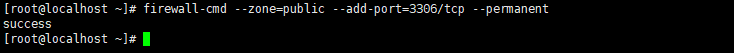 [root@localhost ~]# firewall-cmd --zone=public --add-port=3306/tcp --permanent