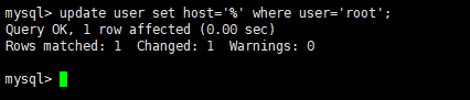 mysql> update user set host='%' where user='root';