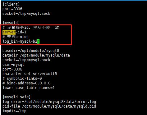 (3)修改从库指向到主库,使用主库配置(5)中记录的文件名以及位点