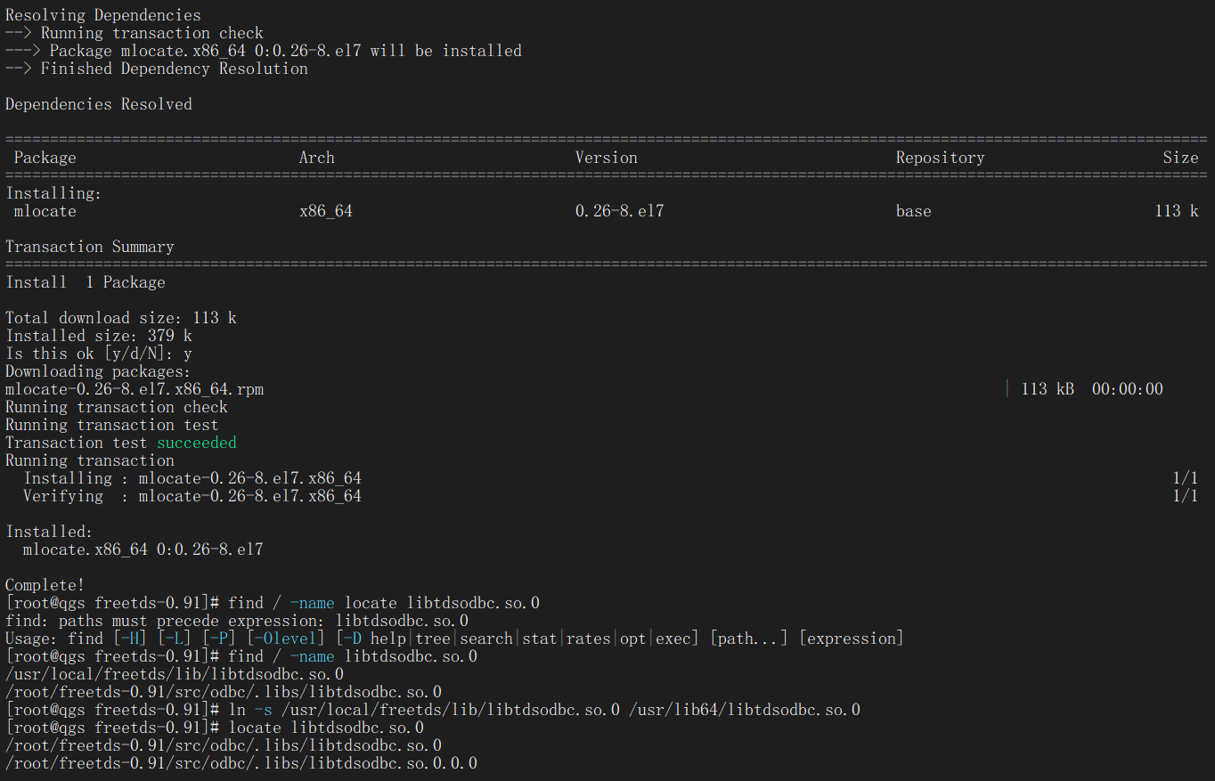 ln -s /usr/local/freetds/lib/libtdsodbc.so.0 /usr/lib64/libtdsodbc.so.0