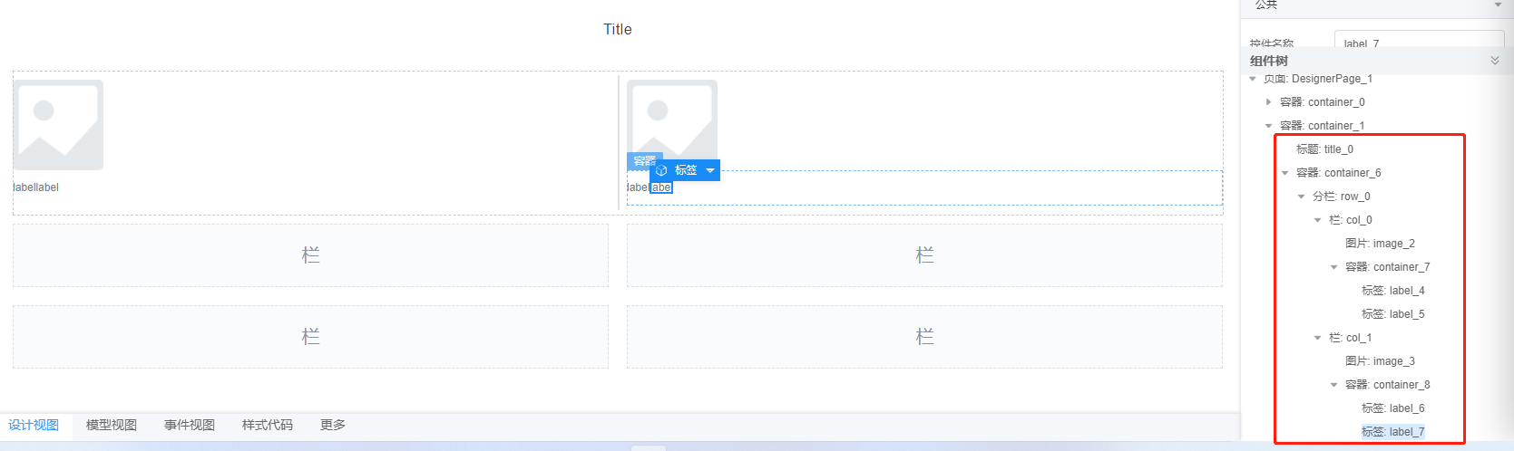 说明:该界面共用到了三个”分栏“组件,每个分栏都有两栏,下面分别设置。