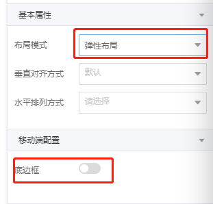 属性修改:布局模式改成”弹性布局“,移动端配置-底边框设置为关闭。