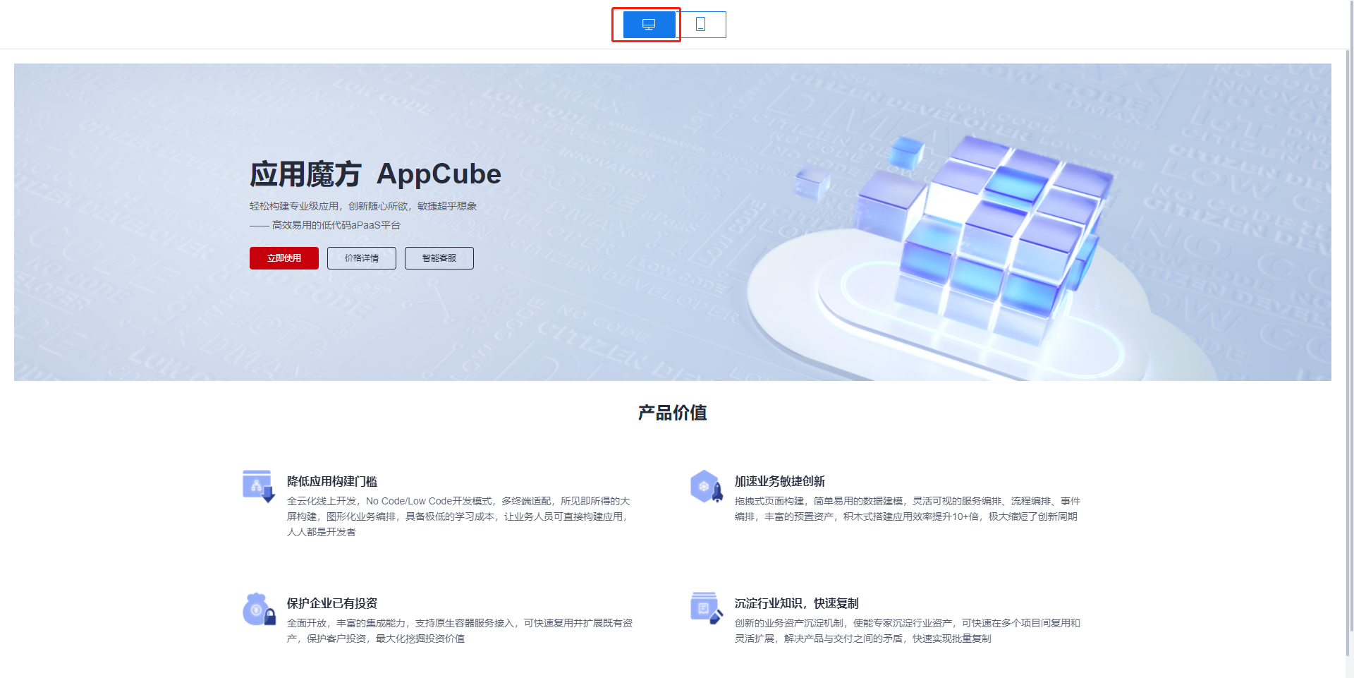 使用AppCube应用魔方创建AppCube官网页面(PC端+移动端)- 详细开发过程(一)