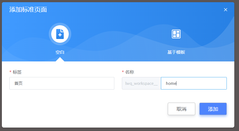 (2)输入页面“标签”和“名称”,点击”添加“按钮
