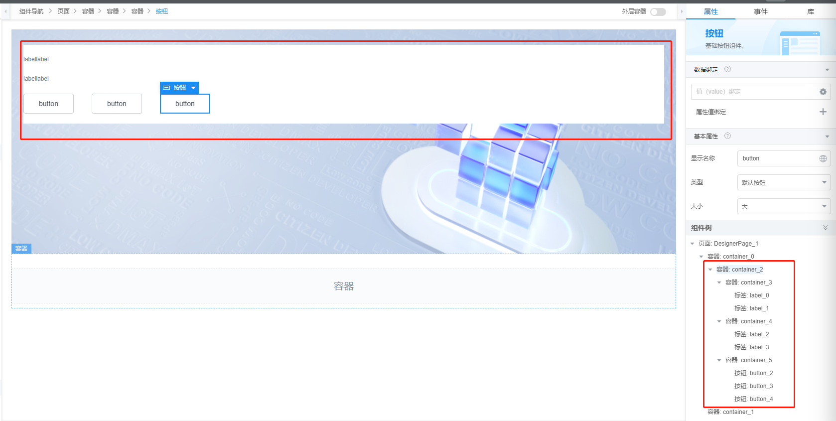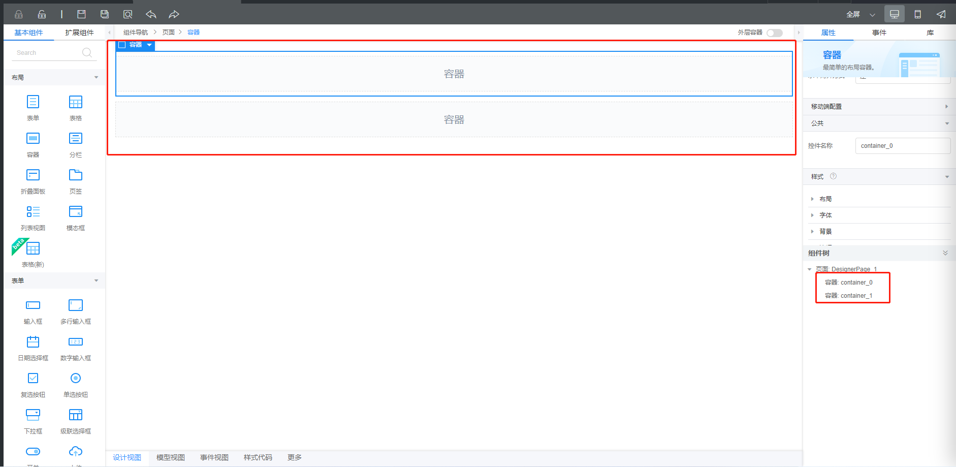 (1)拖放两个容器组件到界面上,采用上下布局方式