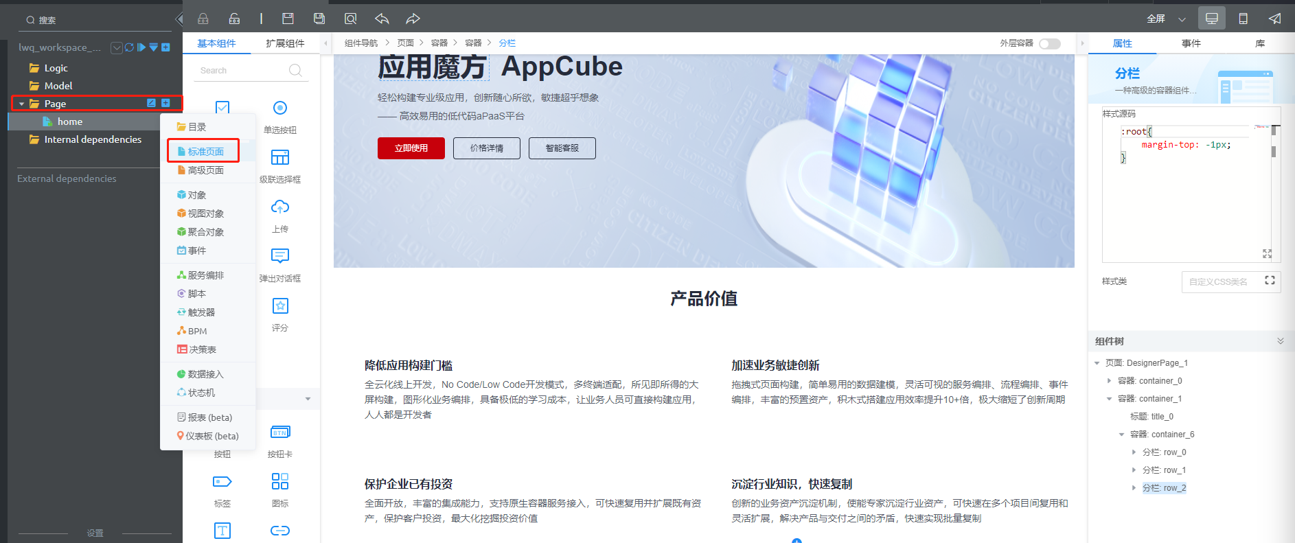 使用AppCube应用魔方创建AppCube官网页面(PC端+移动端)- 详细开发过程(二)