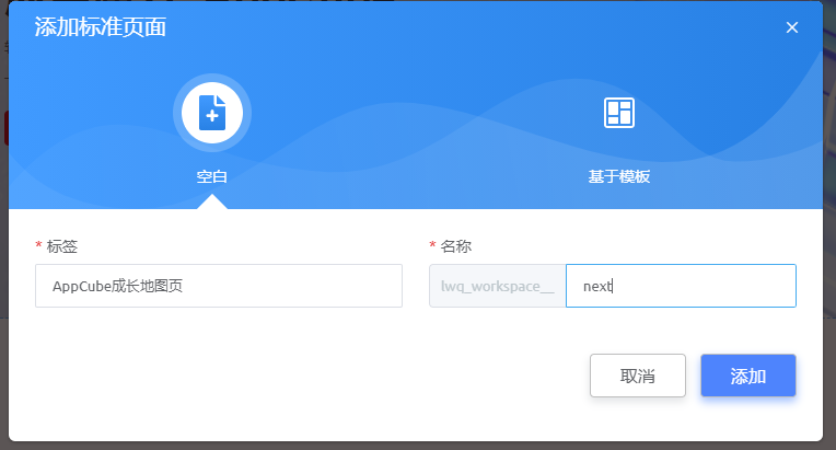 (2)输入页面“标签”和“名称”,点击”添加“按钮
