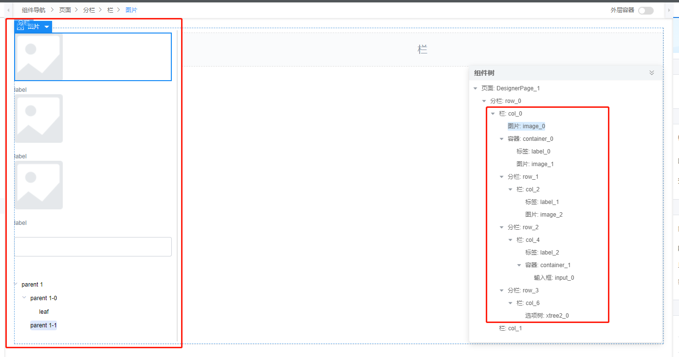 (2)设置”分栏组件“内联样式