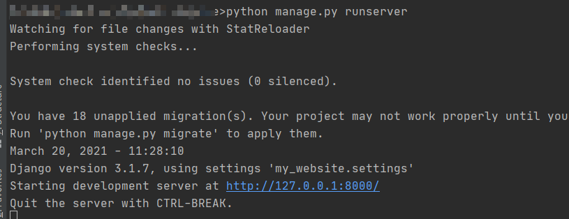 python manage.py runserver