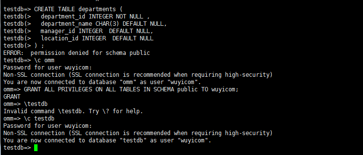 GRANT ALL PRIVILEGES ON DATABASE testdb to wuyicom ;// 授予用户对该数据库的全部权限