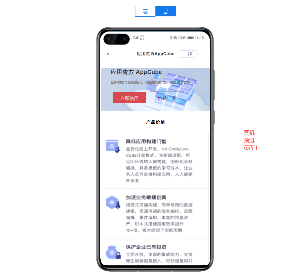 1、AppCube应用魔方是华为云推出的低代码开发平台,适用它可以有助于我们更加方便快捷的完成页面的开发,AppCube的访问地址为:https://www.huaweicloud.cn/product/appcube.html