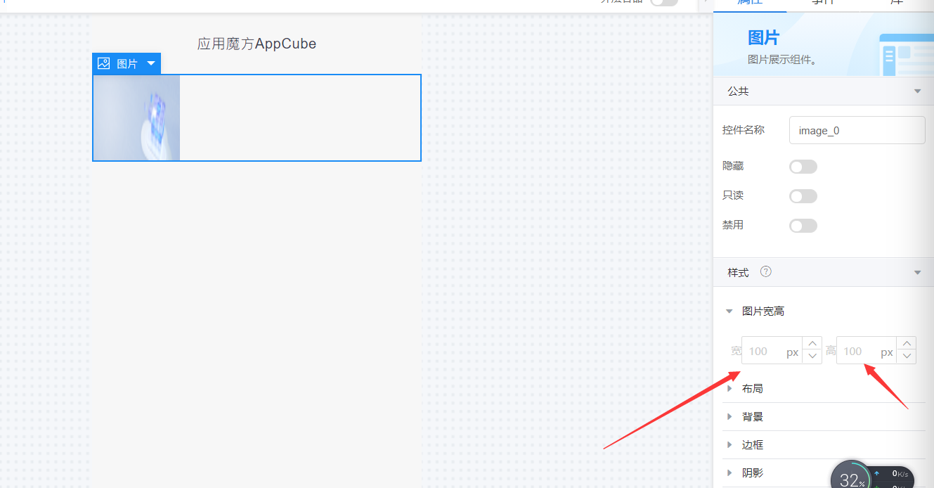 然后简单的拖入两个容器,呈现上下结构,第一个容器先拖入一个标题:应用魔方AppCube,标题下面的样式代码