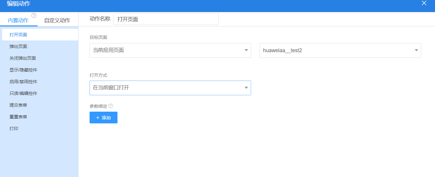 3.事件的跳转很简单,添加一个点击事件,选择跳转到第二个页面。在当前窗口打开就行。