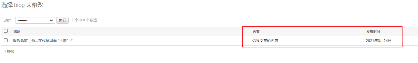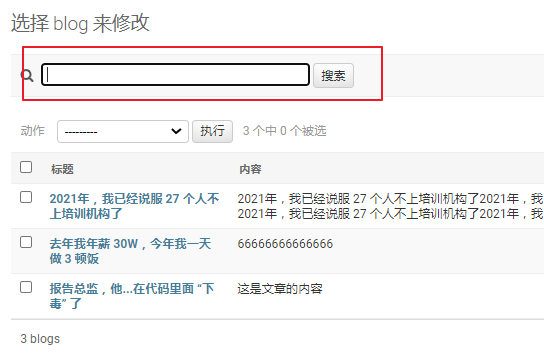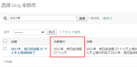 实现列表检索,需要增加的代码也非常简单,在 admin.py 中的类 BlogAdmin 中增加如下代码: