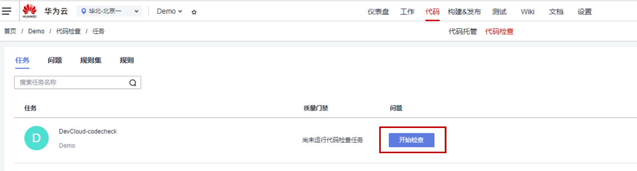 代码检查任务新建成功后,单击任务的开始检查按钮进行执行。