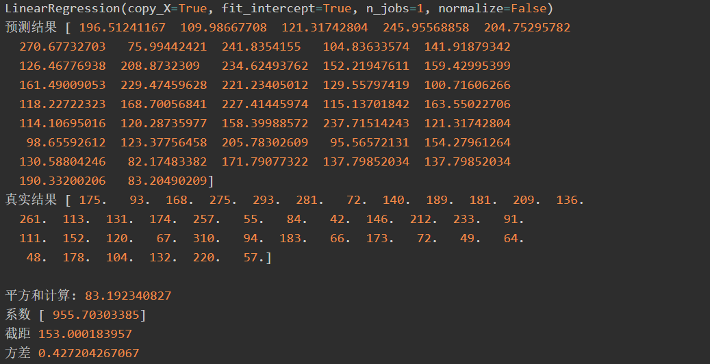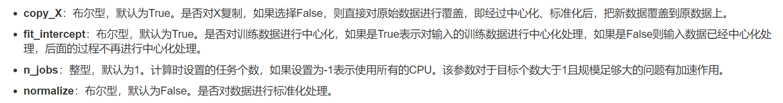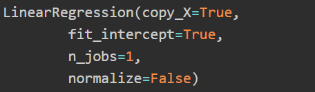 LinearRegression回归模型在Sklearn.linear_model子类下,主要是调用fit(x,y)函数来训练模型,其中x为数据的属性,y为所属类型。sklearn中引用回归模型的代码如下: