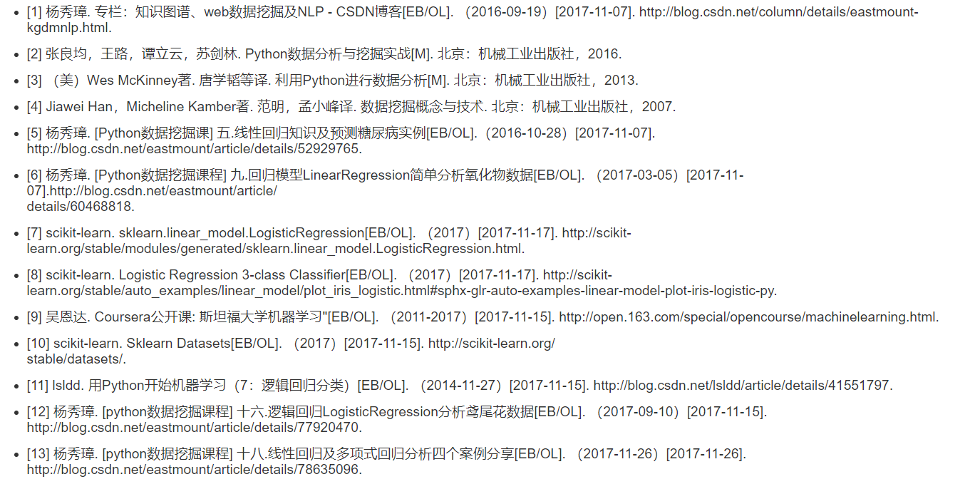 在Python中,我们通过调用Sklearn机器学习库的LinearRegression模型实现线性回归分析,调用PolynomialFeatures模型实现多项式回归分析,调用LogisticRegression模型实现逻辑回归分析。希望读者实现本章节中的每一部分代码,从而更好的用于自己的研究领域、解决自己遇到的问题。