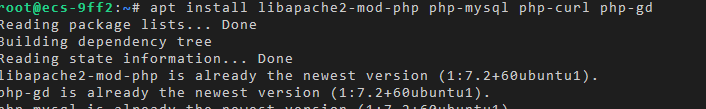 apt install libapache2-mod-php php-mysql php-curl php-gd