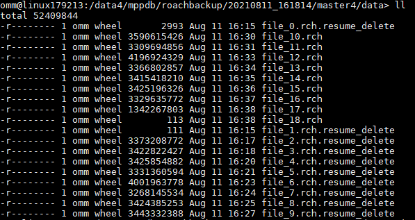 总结一下,4GB颗粒度的断点续做,其实就是基于备份前生成的数据文件清单而进行的续做。通过辅助的roach_resume_trans_log日志文件,记下最近一次完成的4GB的rch备份压缩文件里对应的数据文件编号最大值(包括exec线程和reader线程两种编号),下次续做时从这里记录的编号值接着读取数据文件清单,进行续做。