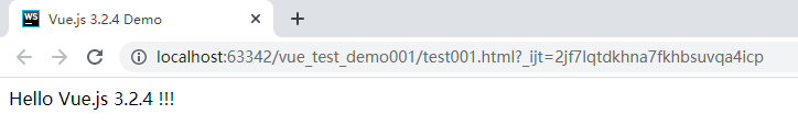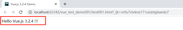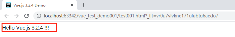 接下来,创建一个简单的Vue单页面文件,在HTML 5页面中直接引入Vue.js库文件,在页面中输出一行简单的欢迎信息(“Hello Vue.js 3.2.4 !!!”),代码如下: