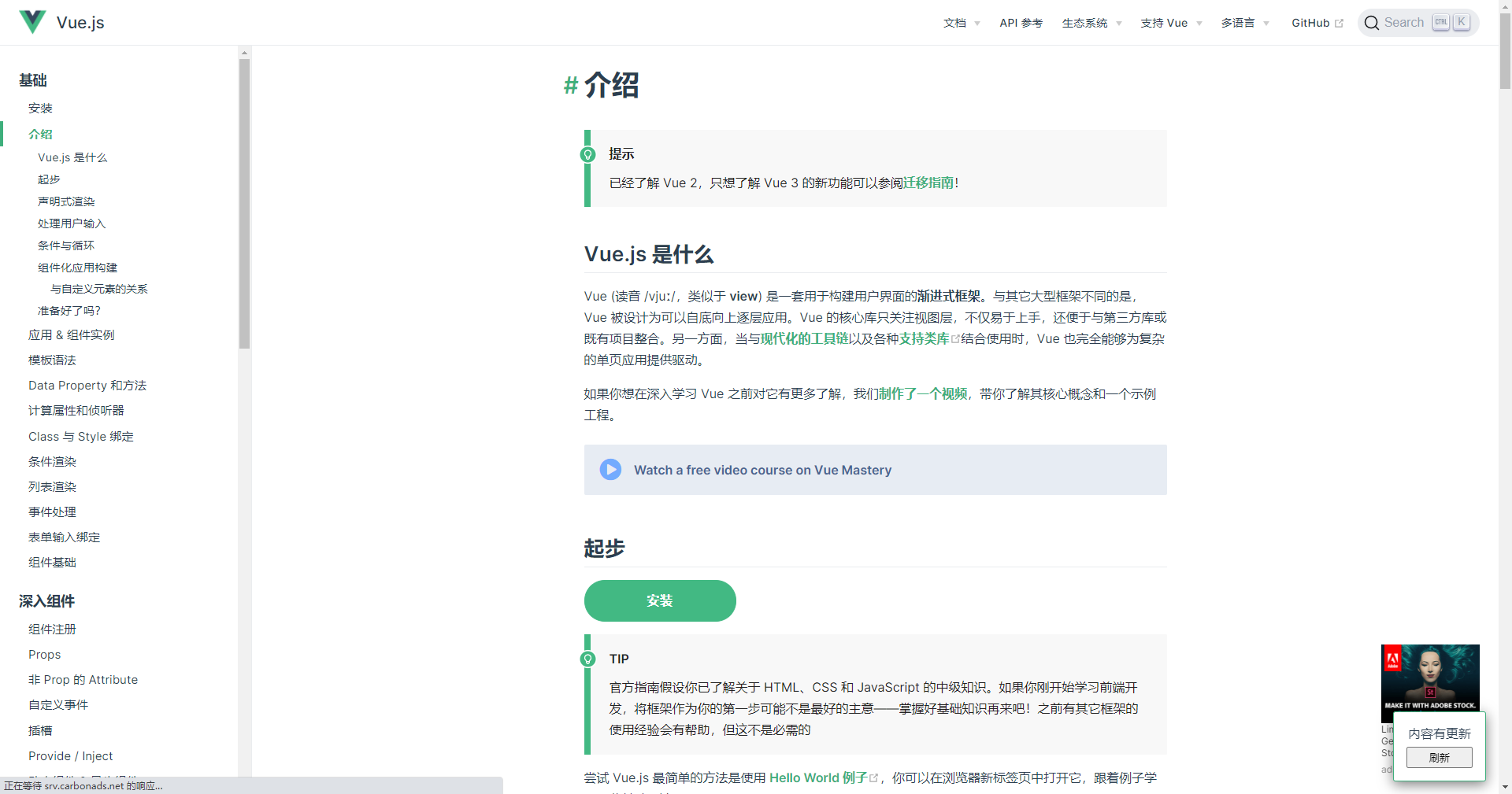 (1)首先,访问Vue3.0的中文官方网站(https://v3.cn.vuejs.org/)