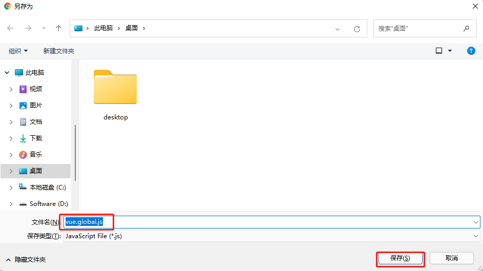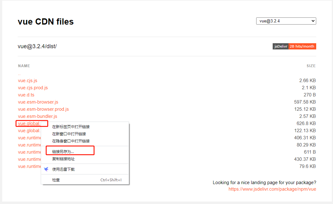 (5)在文件vue.global.js或vue.global.prod.js上,点击鼠标右键,选择“链接另存为…”