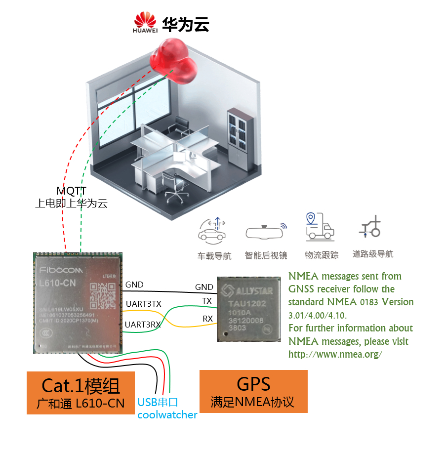 华为云 openCPU 智联模组 _Cat.1_MC615-CN-L610-CN_GPS 定位器:上电即上华为云