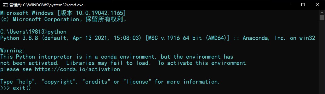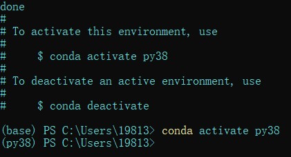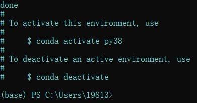 当(base)变为环境名(py38)就说明环境已经被激活了 -