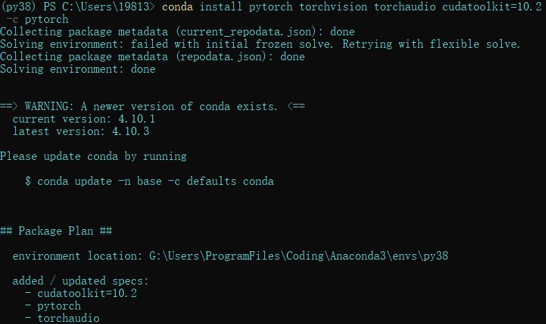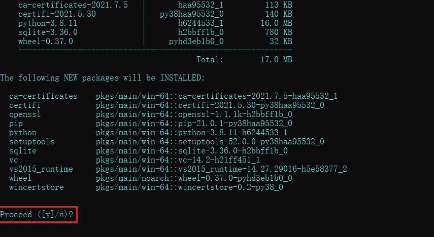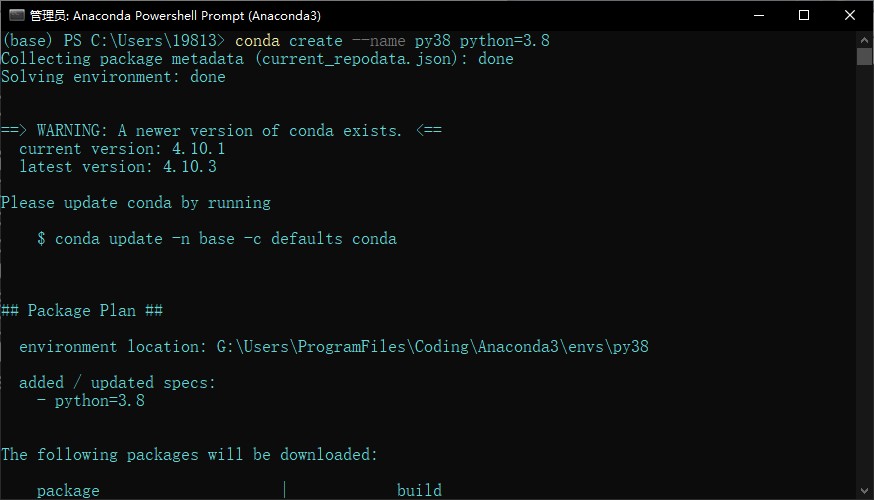 conda create --name py38 python=3.8- 意思是:创建一个名为“py38”的环境,环境中安装版本为3.8的