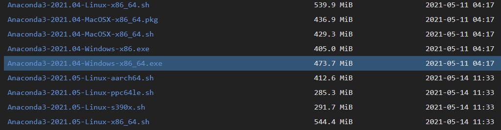 网速好:官方下载:https://repo.anaconda.com/archive/