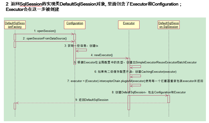 返回一个DefaultSQlSession对象,包含Executor和Configuration; 同时会创建Executor对象;