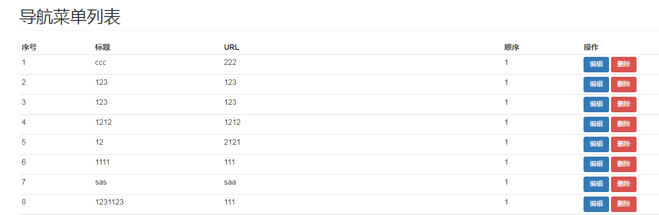 以上内容编写完毕,可以重启 Django 服务器,通过访问 http://127.0.0.1:8000/navbar/add/ 即可打开导航菜单添加页面,点击添加提交数据,返回数据之后,如果成功页面跳转到列表页面。