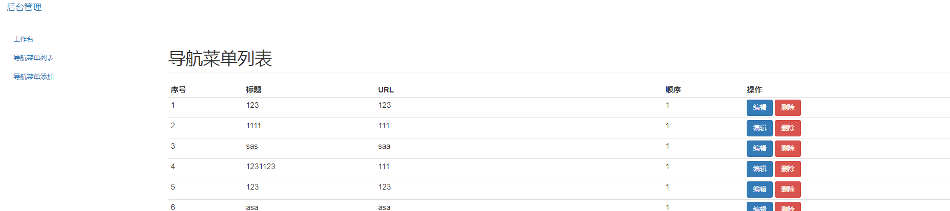 本小节完成了导航的增删改查,并且在后台新增了列表与新增的入口,页面美观度部分非本系列重点知识,所以先实现效果吧。
