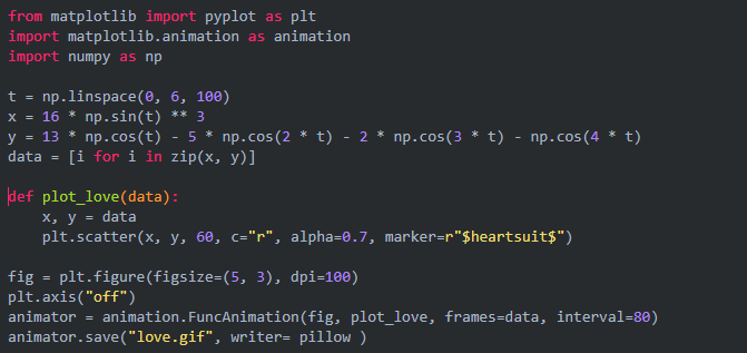 2、 利用matplotlib表达爱意