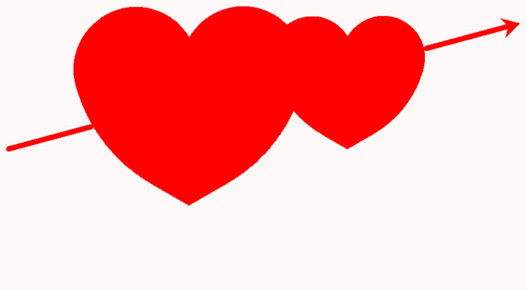 my_heart.arrow() # 画出穿过两颗心的直线