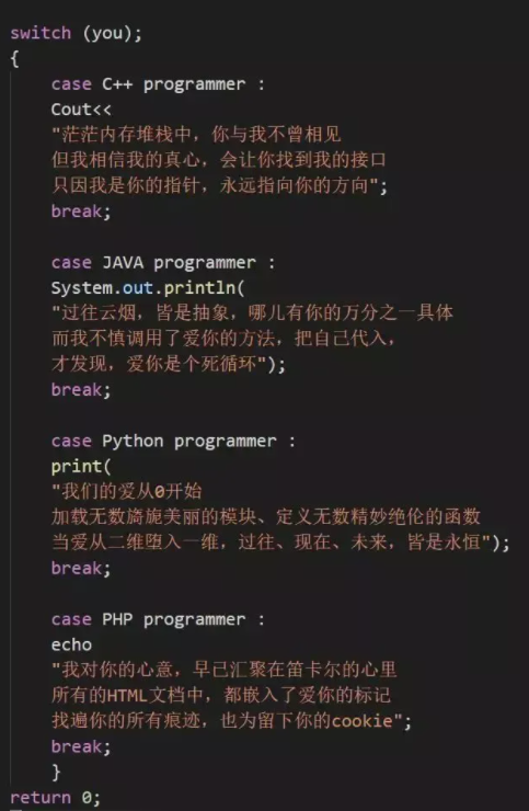"我写过最得意的代码,就是让你答应做我女朋友的那串代码。"