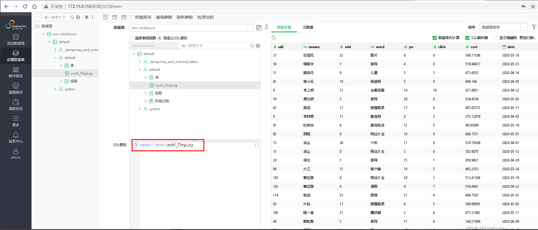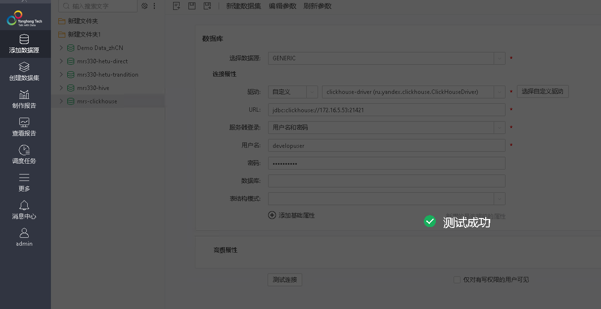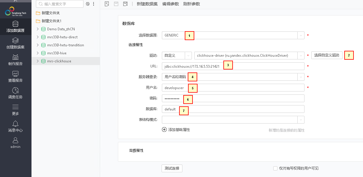 【摘要】 本文介绍如何使用永洪bi对接华为FusionInsight MRS ClickHouse