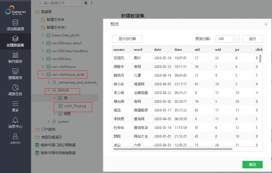 永洪一站式大数据分析平台对接FusionInsight ClickHouse