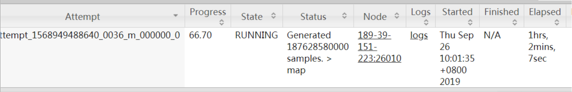 1.首先在任务页面点击map,点击log,可以找到对应的containerID