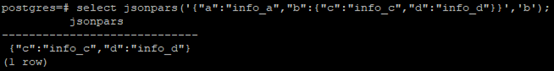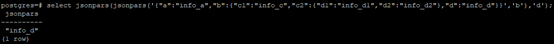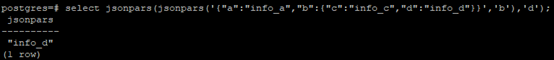 【用例2】select jsonpars('{"a":"info_a","b":{"c":"info_c","d":"info_d"}}','b');