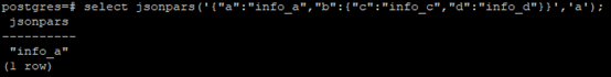 【用例1】select jsonpars('{"a":"info_a","b":{"c":"info_c","d":"info_d"}}','a');