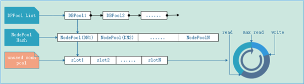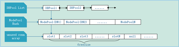 每个DBPool拥有一个存储DN节点个数NodePool的Hash表,用来存储连往不同DN的空闲连接。