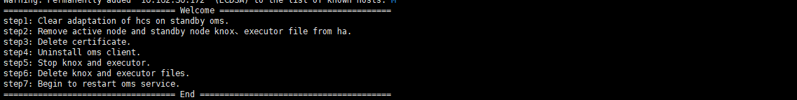 • 如果取消纳管失败,可使用 root 或 omm 用户登录待纳管集群主、备管理节点,查看日志文件“${BIGDATA_LOG_HOME}/controller/scriptlog/clearHCS.log”进行问题定位。
