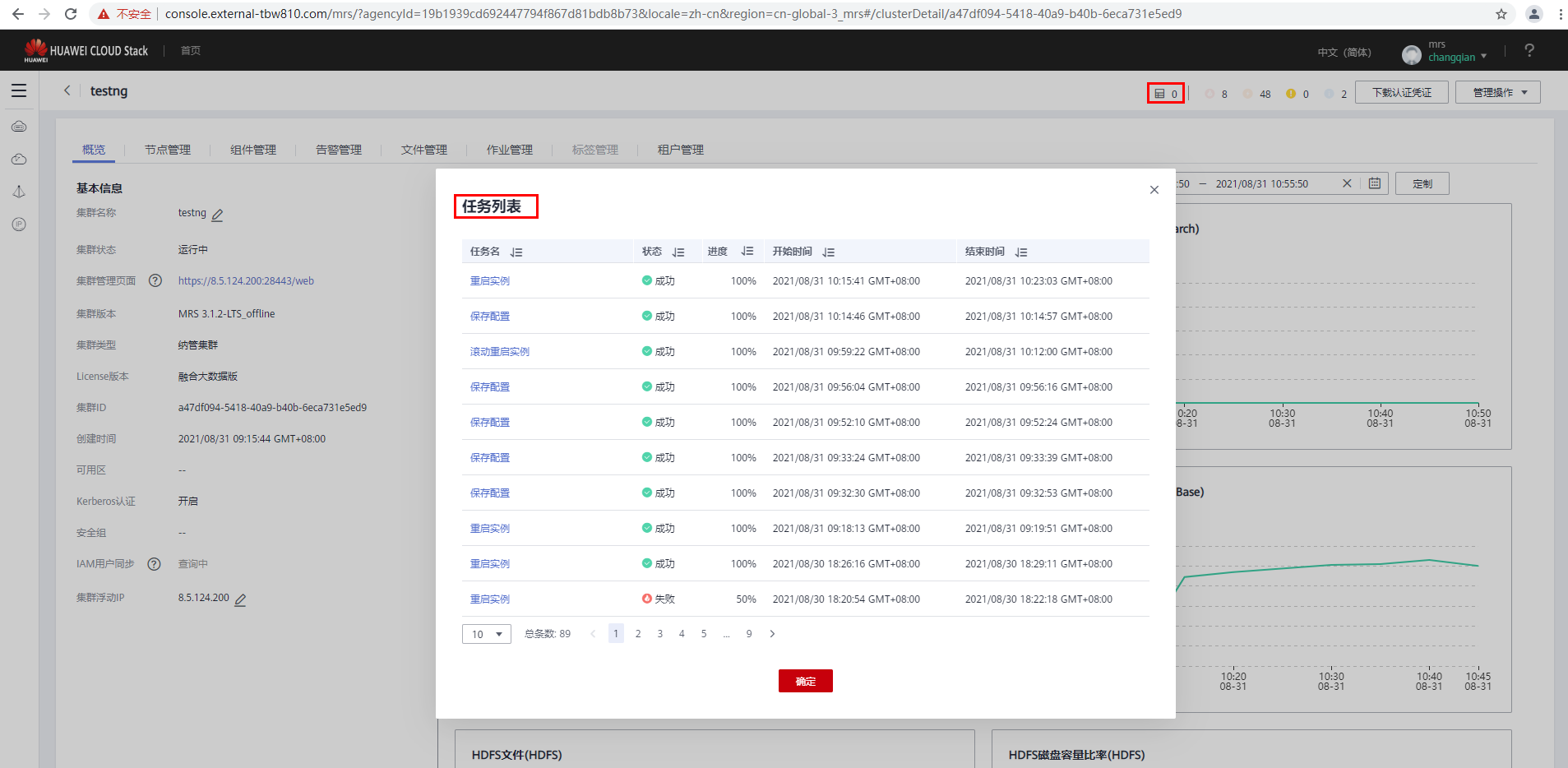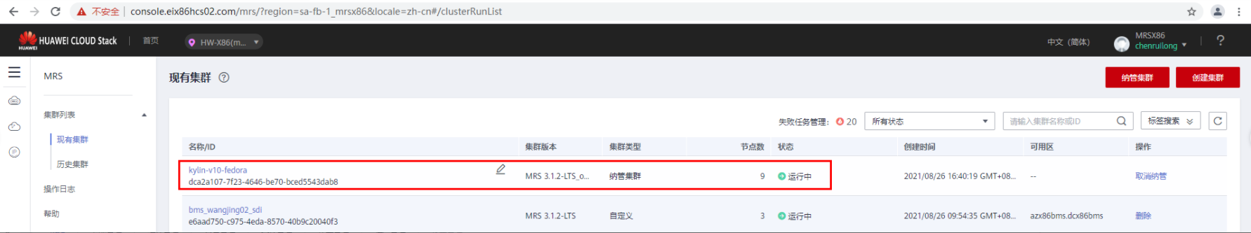 - 2 . 7 、 待纳管的物理机集群内各节点的时区时间信息需要与HUAWEI CLOUD Stack管理面保持一致,否则纳管后可能会出现MRS管理控制台上无法查询集群作业任务的情况